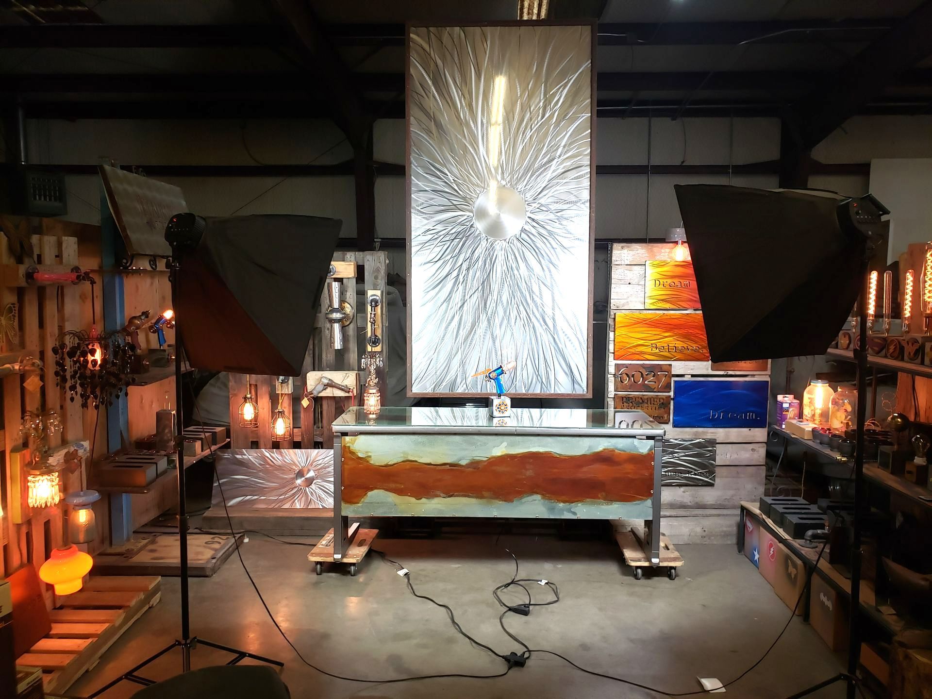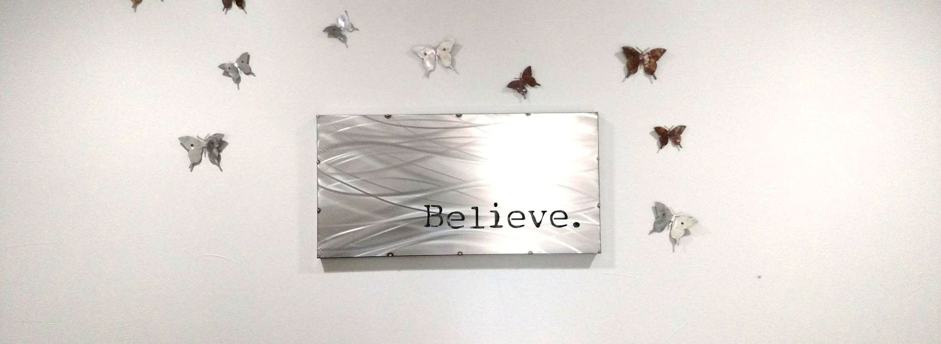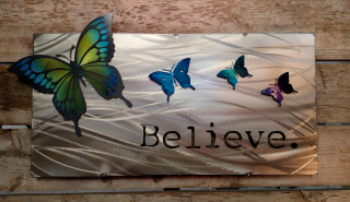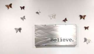 These smaller yet no less original masterpieces have customers ordering their beloved personally upgraded metal art for their walls. The contemporary and sophisticated designs come from the inspiration and collaboration of client and artist, specifically made for those who seek high artistic value and quality. They are made from 12 Guage steel, precisely laser cut with the design or phrases using highest technology, hand welded and Back-lit if requested with modern led lighting.