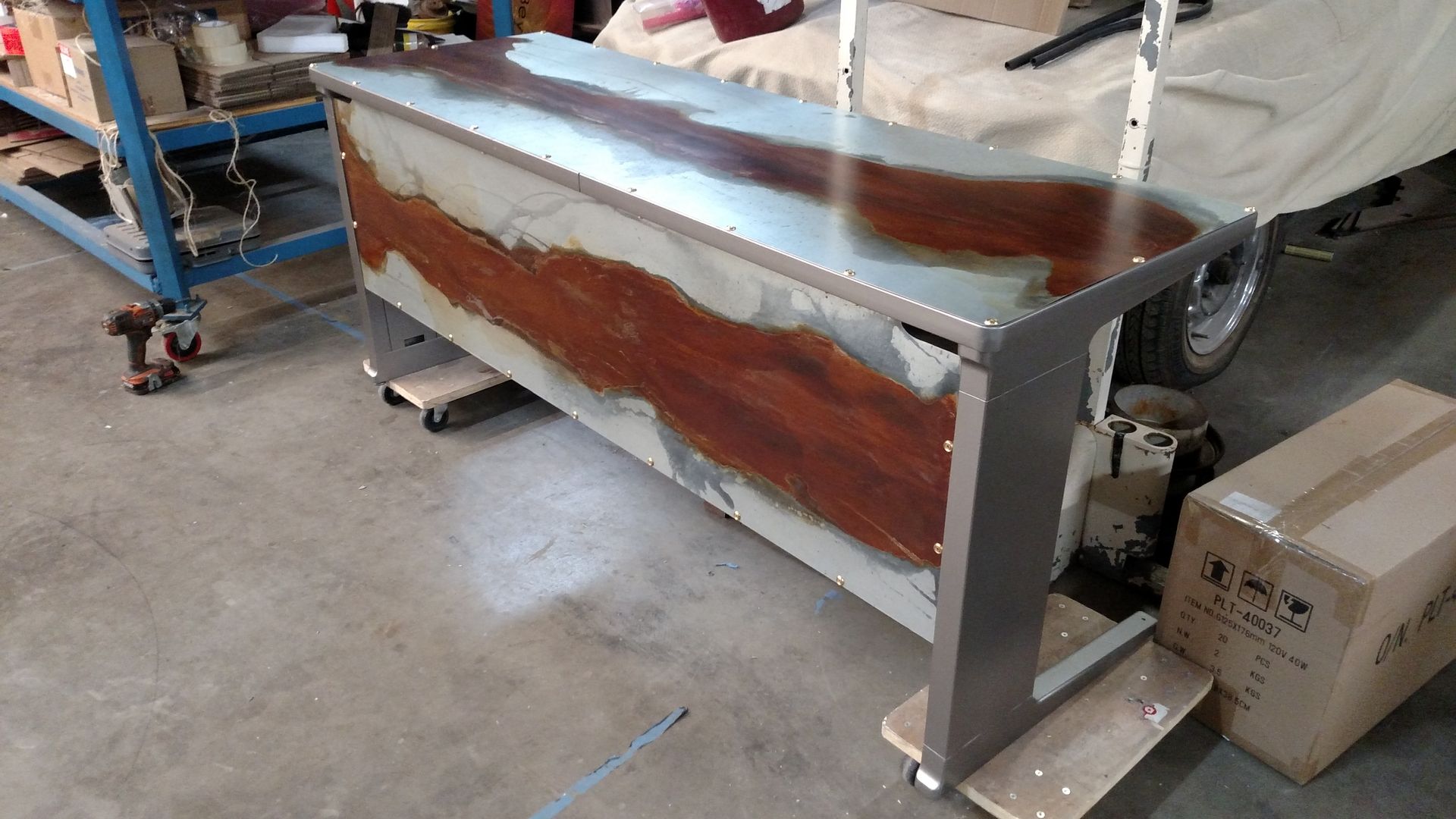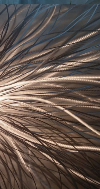 Its carefully rusted rivers are etched through the center of the stainless piece, and then professionally sealed creating an enduring warm appeal of natural rustic autumn bronze highlights encased in raw yet distinguished Artistic brilliance. This Timeless interior wall art design is then Finished with high quality Clear coat to ensure solidity and durability With long-lasting museum life. Meant to be Displayed horizontally or vertically to be an ultimate room décor compliment.
