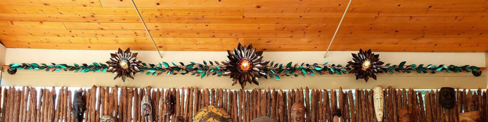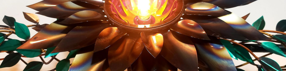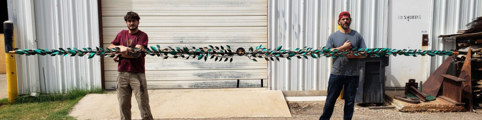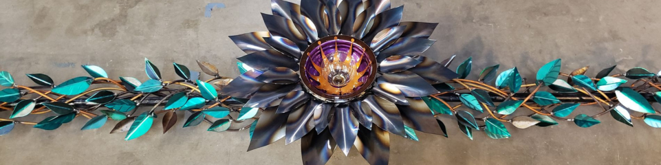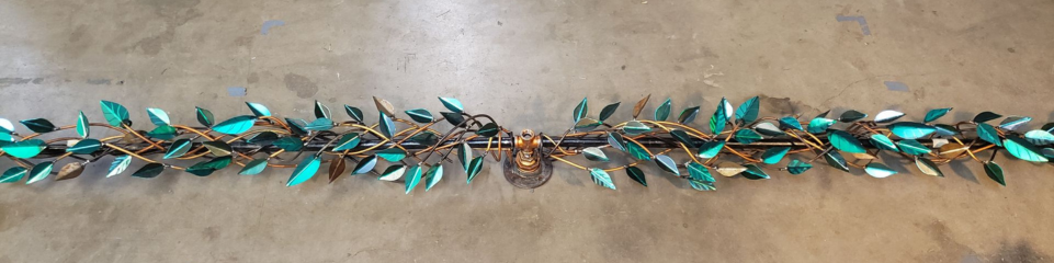 The sculpted leaves attached to the iron hand bent Poles allow for the long vines to capture the sun's rays illuminating the carved details