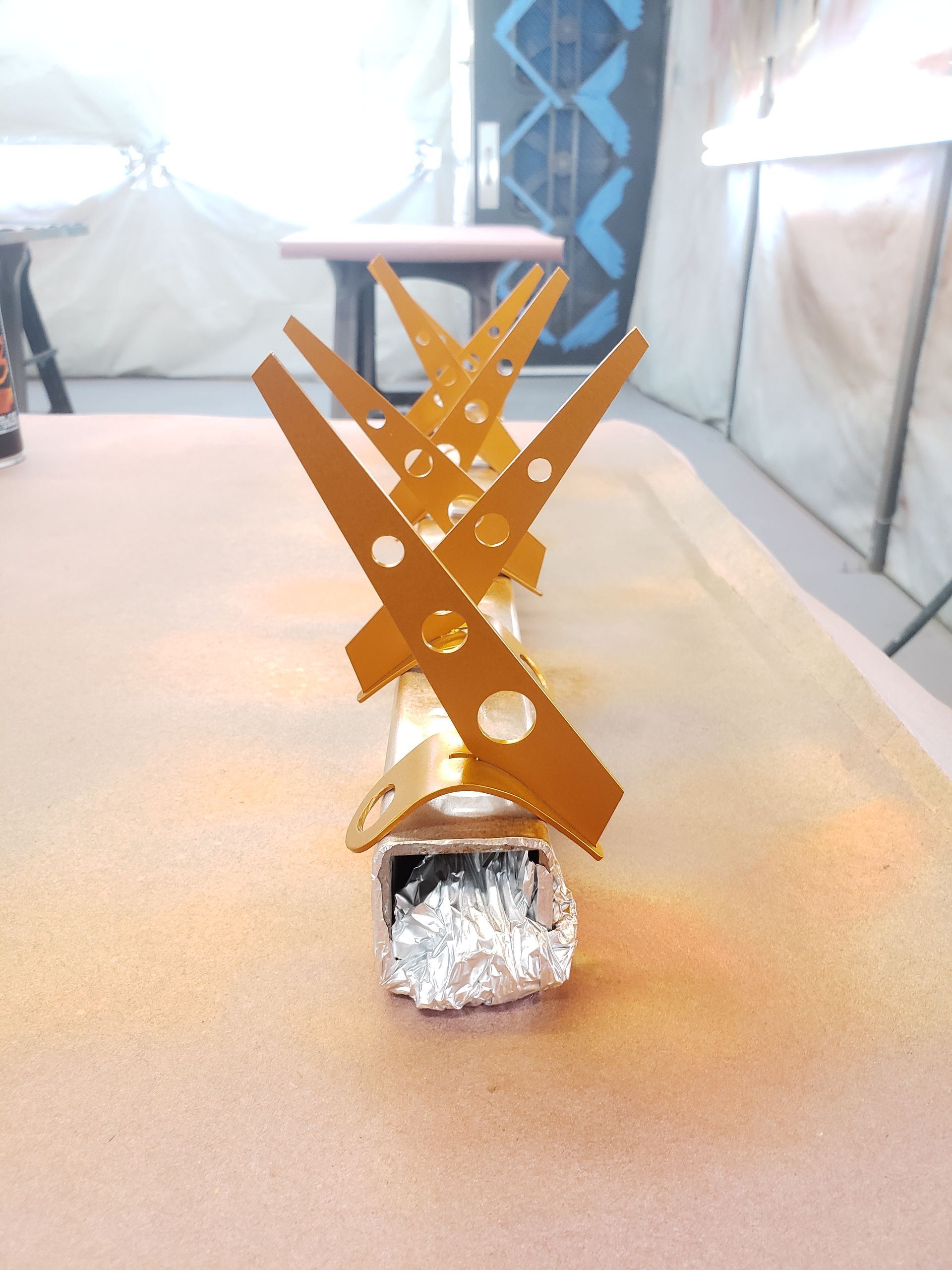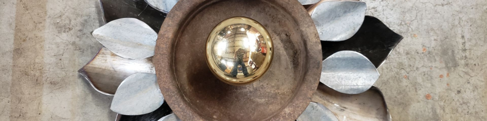 Finished with lightly brushed metallic gold complimenting the rusted industrial piping Cascading down to their 12 inch plate steel mounting. The perfect choice for any ceremonial occasion to create an ambient effect or take everlasting photos with.