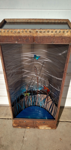 The 3 foot Sculpture from base to antenna is constructed and fabricated from the intelligence and brilliance of the artist.