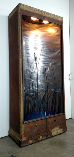 Inspired by the space era of the 50’s and 60’s, the 1- 2 foot rocket ship models, composed of recycled and reclaimed vintage parts blended with updated fabrication from 18 gauge steel. These retro originals stand alone and uncontested delivering a powerful dialog of imagination and design. This durable Statement art was created with the intention to evoke an environment of masterful artisanship while blending with contemporary and atomic interior design.