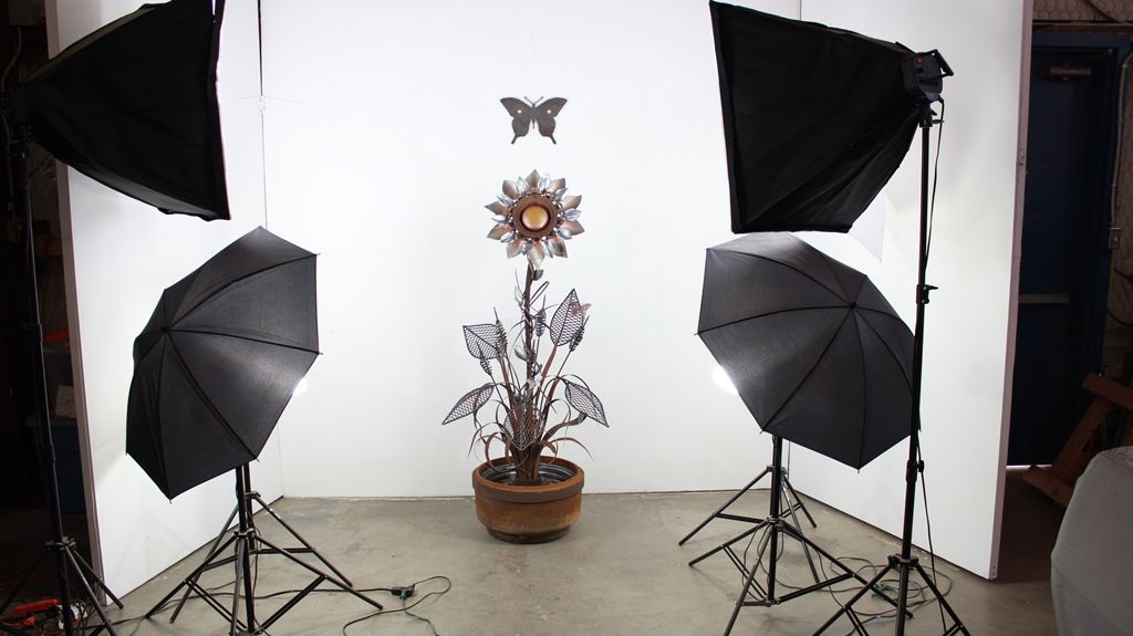 The sculpted leaves attached to the iron hand bent Poles allow for the long vines to capture the sun's rays illuminating the carved details